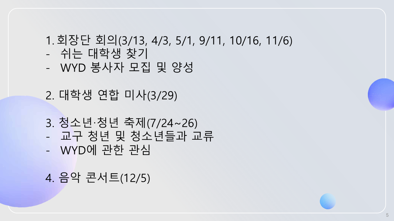 대학생&청년 활동계획입니다. 참고바랍니다.