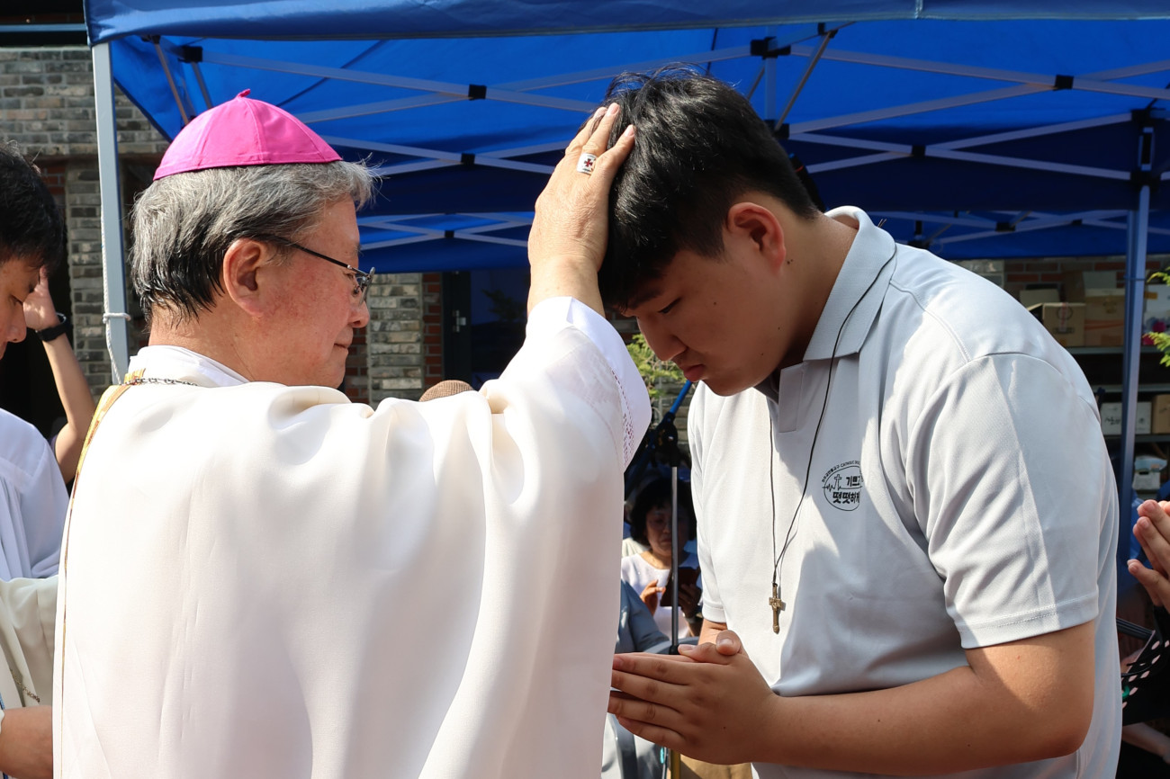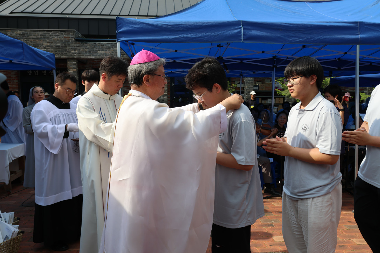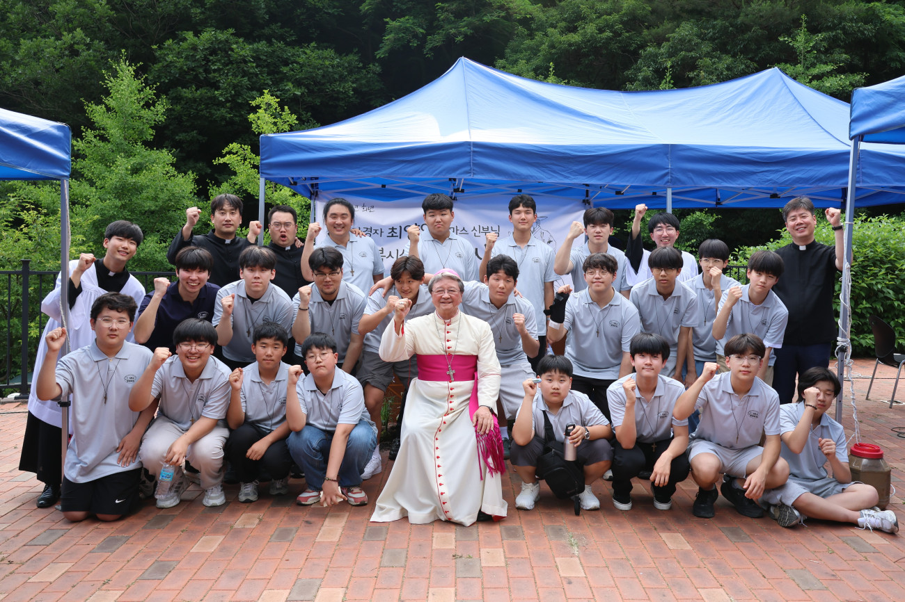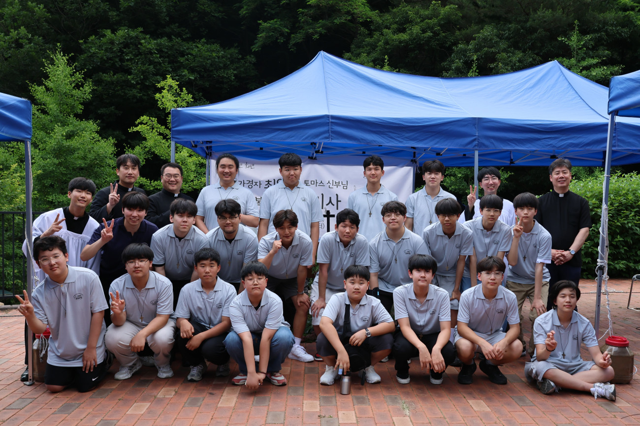 6월 15일(주일) 진안리 성지에서 예비신학생 6월 모임이 있었습니다. 이번 6월 모임에서는 예비신학생과 부모님들이 다 함께 최양업 신부 시복시성 기원미사를 봉헌하였습니다. 특별히 한국인 첫 신학생이기도 했던 최양업 토마스 신부님의 뒤를 잇기 위해 준비 중인 예비신학생들을 위한 주교님의 안수 축복과 십자가 수여 때는, 모두 함께 뜨거운 박수와 큰 환호로 응원해 주셨습니다.